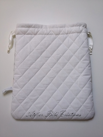 • dos et doublure = tissu uni (blanc ou pastel suivant stock) 100% coton Oeko Tex